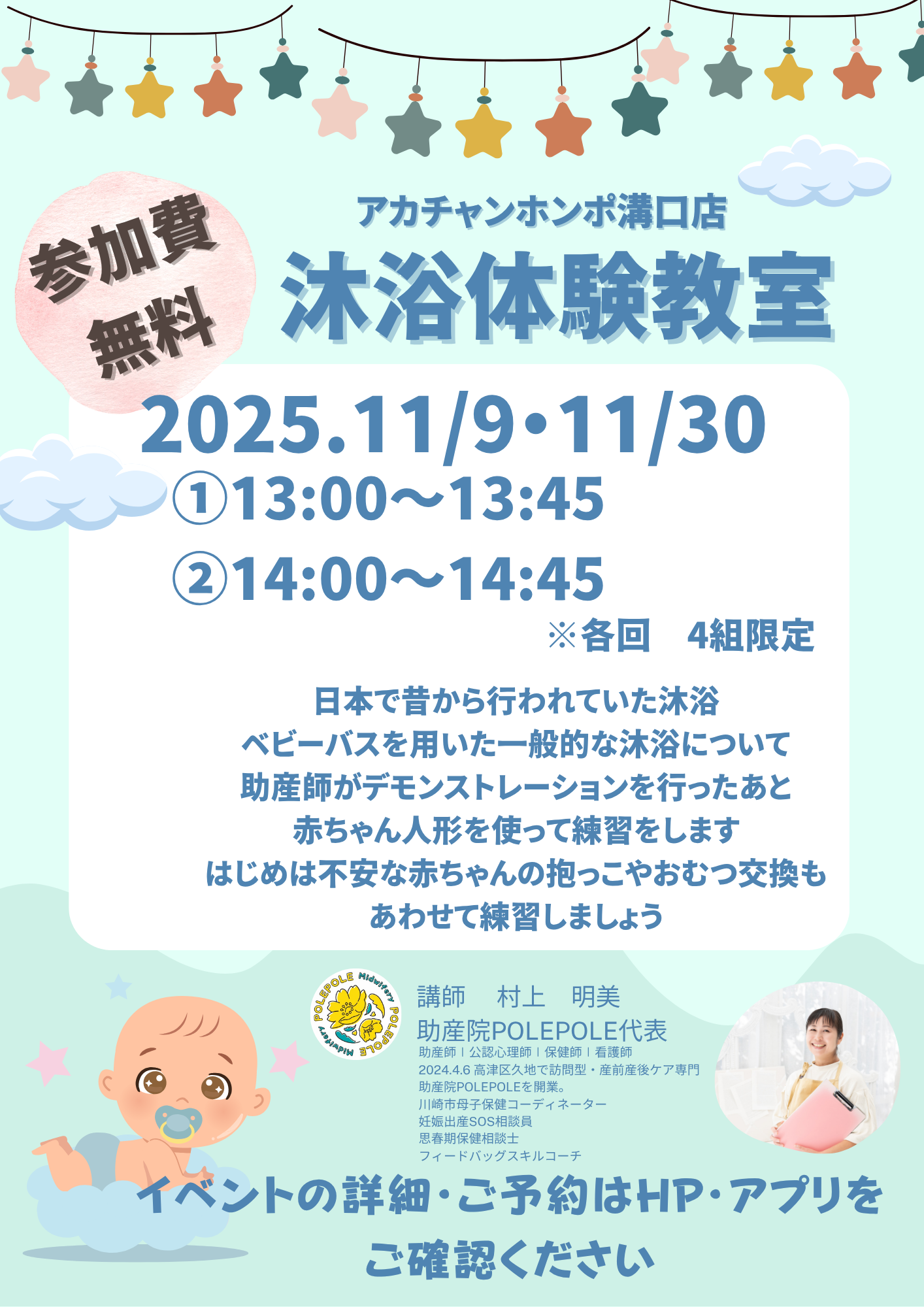 アカチャンホンポ溝の口店で無料沐浴体験教室のお手伝いをしております。アカチャンホンポホームページまたはアプリよりお申込みください。